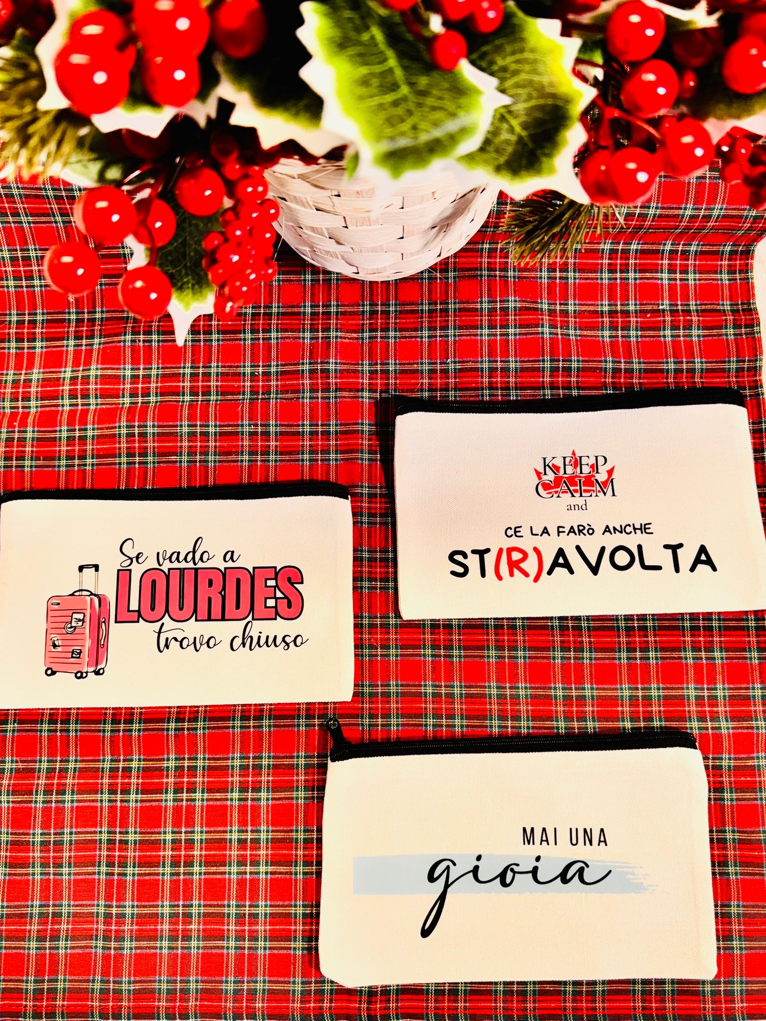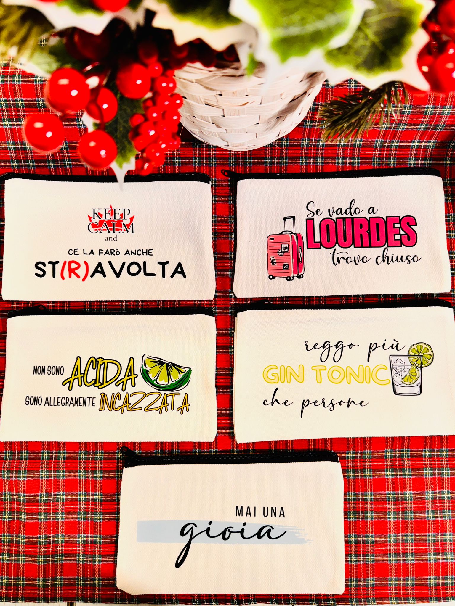 Borsetta in tessuto con cerniera. 5 varianti di testo