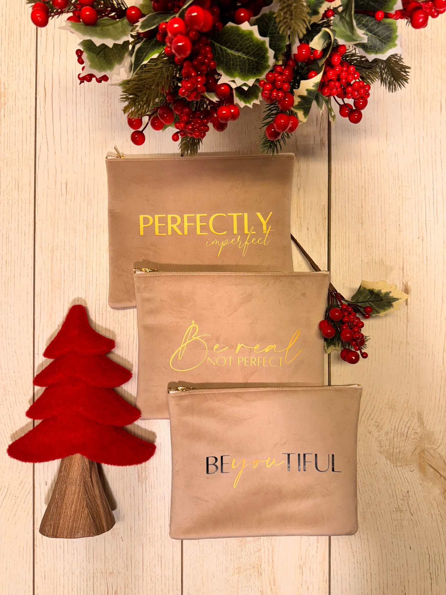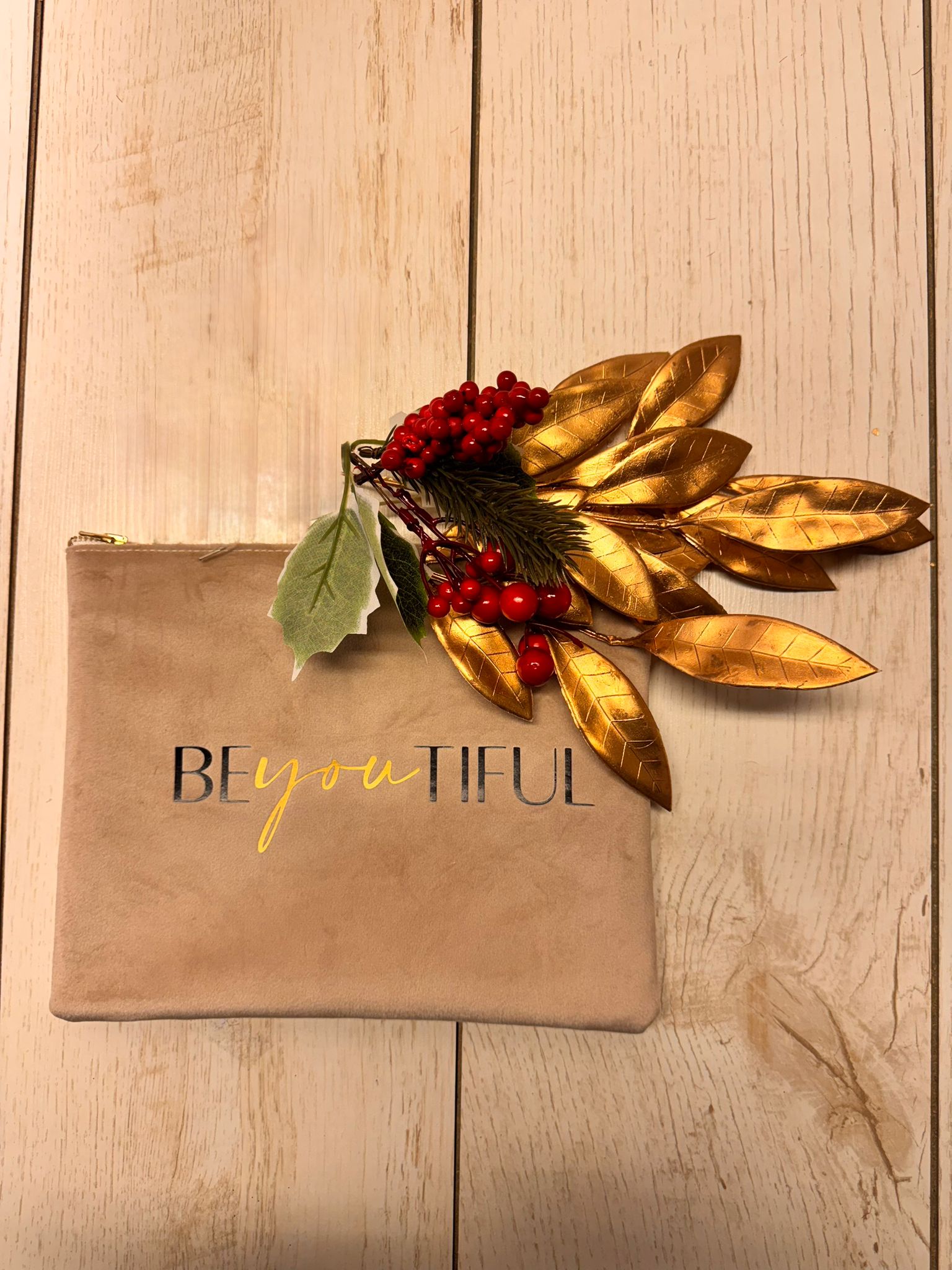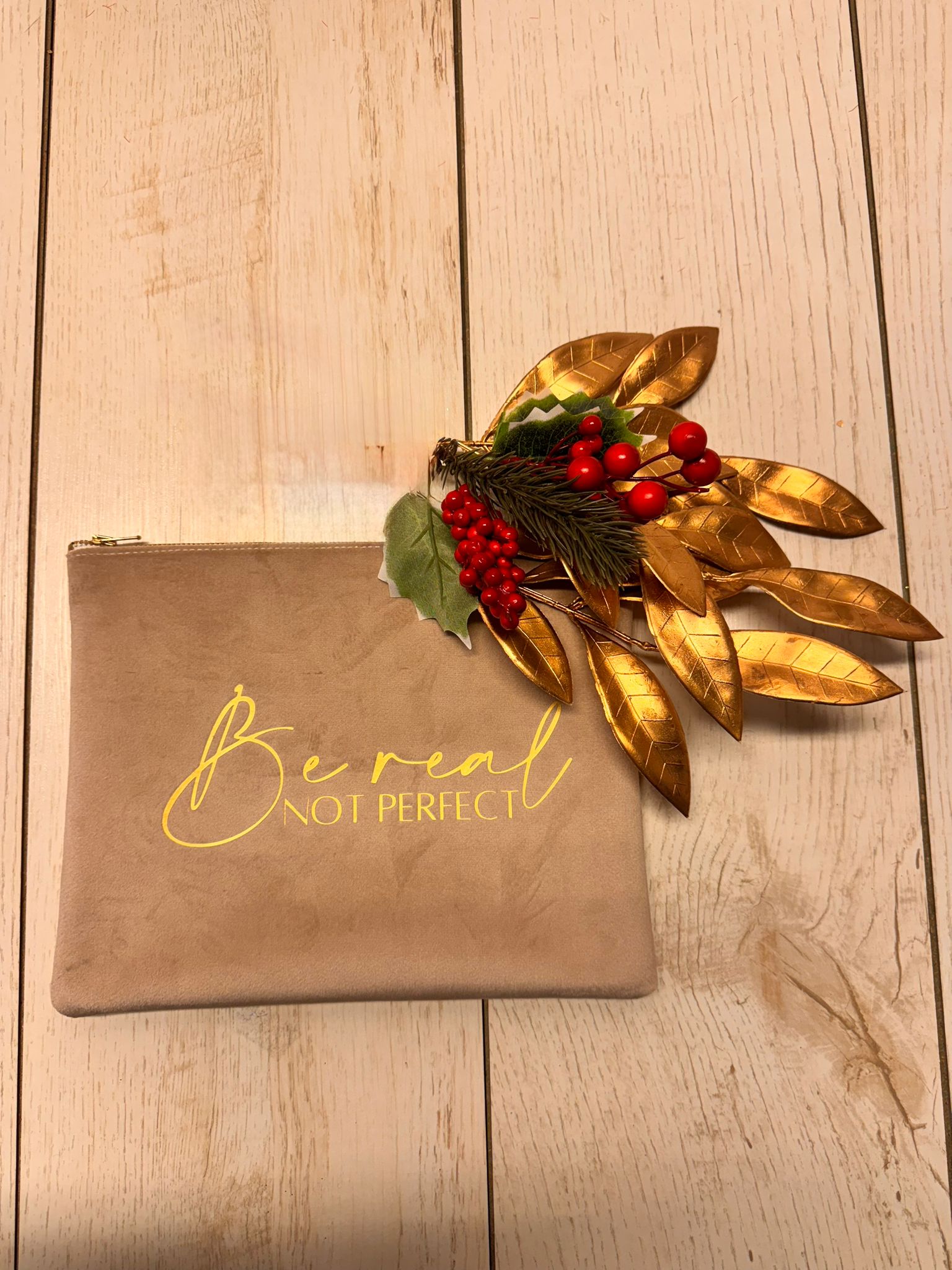 Borsetta in velluto color tortora, interno in ecopelle con stampa color rosa. made in italy. misura 25x20 cerniera oro. 3 varianti di testo
